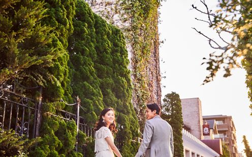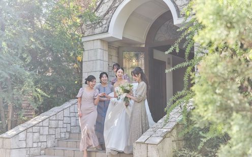 閑静な北山の街に佇む、アメリカ人牧師により建立された本格独立型教会は、色あせることなく7,000組もの挙式を見届け続けてきました。天井高10mの開放感あふれるチャペルには柔らかな自然光が差し込み、凛とした空気に包まれています。豊かな木の香りと柔らかな自然光に満ちる礼拝堂での挙式は、いつまでもおふたりの記憶に残ることでしょう。本物の教会だからこそ、何年経っても帰ってこられる想い出の場所に。特別な日には、大切な家族と気軽に立ち寄ってください。また、挙式スタイルは生演奏付の本格キリスト教式またはオリジナリティ溢れる人前式からお選びいただけます。さらに、縁結びの神様が祀られている「下鴨神社」での神前式も承りますので気軽にお問い合わせください。