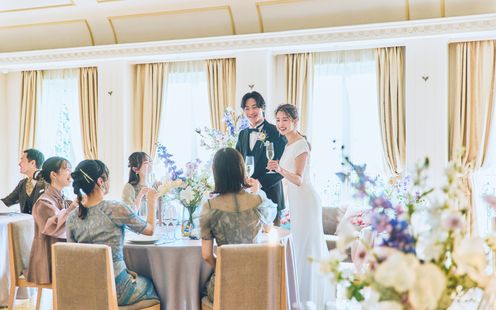 季節な花々や、ふたりの好きなカラーで光あふれる空間を自由にコーディネート。こだわりアイテムの持込みも可能なのでふたりらしい世界観を創り上げます。