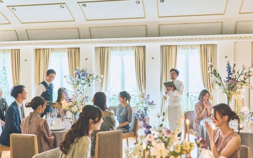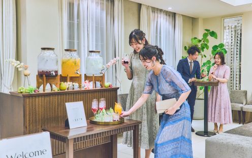 ガーデンセレモニーをはじめ、フィンガーフードを囲んでのウエルカムパーティや、コース料理を楽しんだ後にデザートビュッフェとともに歓談タイムを設けるなど多彩な演出をお楽しみいただけます。ガーデンと会場を行き来しやすいような、ふたりらしいおもてなしをかなえて!