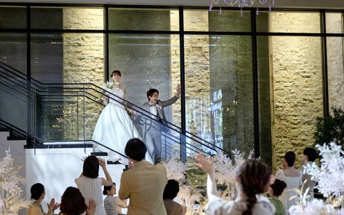 表参道でひと際存在感を放つ【セントグレース大聖堂】は、地上28mのゴシック様式の本格大聖堂で各メディアのロケ地としても大人気!130年の時を刻む壮麗なステンドグラスや長さ20mにおよぶ大理石のバージンロードなど訪れた花嫁を一瞬で虜にしてしまうほど圧巻!挙式スタイルは、キリスト教会式(パイプオルガン・聖歌隊4名編成)またはオリジナリティあふれるふたりらしさを表現した人前式のセレモニーが叶います。また、大階段でゲスト全員と撮影する集合写真も好評いただいております。