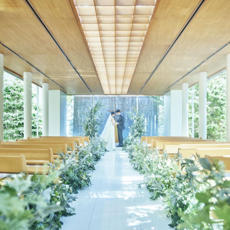 03.<水に浮かぶ透明なチャペル>光・水・緑に囲まれ四方をガラスで覆われた神聖な空間