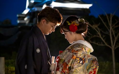 熊本城を望む特別な景色の中で交わす誓いは生涯忘れられない思い出に。自由な和装人前式が人気