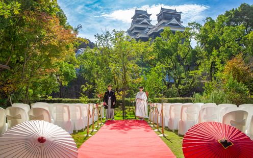 熊本城を望む贅沢なガーデンと多彩な演出で彩る特別な時間。自然あふれるウェディングシーン
