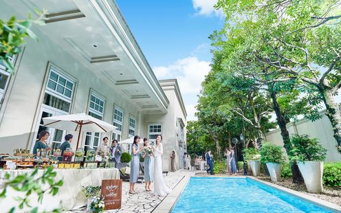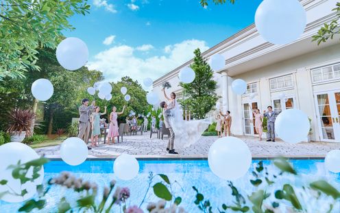 プール付きガーデンもふたりのアイデア次第で自由なウエディングステージに早変わり♪自然に包まれるガーデンセレモニーはもちろん、挙式後にフラワーシャワーやブーケトス、バルーンリリースなどの演出も可能!さらに祝宴前にはウエルカムパーティ、パーティ後半はフォトブースを設置して青空のもと記念撮影を楽しんだり、ナイトタイムにカクテルパーティを行ったりしてふたりらしいおもてなしを叶えてみては。専属プランナーがふたりの希望にそって外国映画のワンシーンのようなオシャレなパーティを提案いたします。