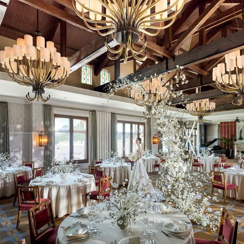 会場は3つありますが、私たちはやはり落ち着いた空間が好きなので一階のザ・メインダイニング ウィステリアという会場を選びました。
