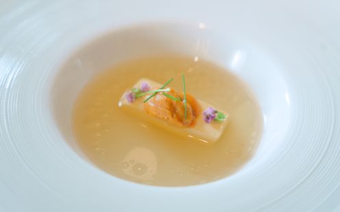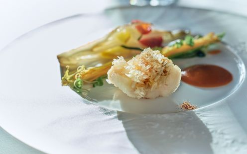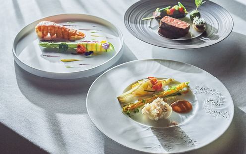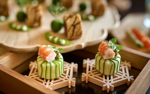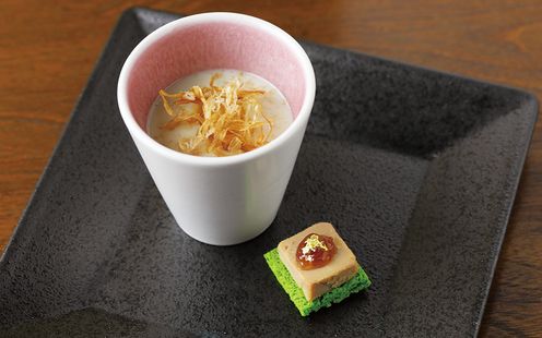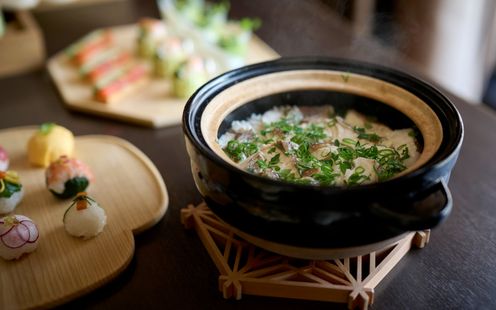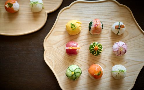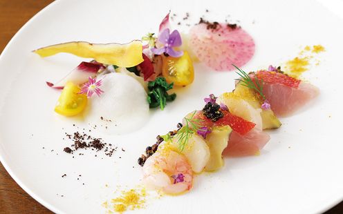 藤屋が大切にしているのは、五感でお楽しみいただける料理。ハレの日にふさわしい特別メニューを一皿ひと皿におもてなしの心を込めて用意しています。出来たての美味しさをお届けするため、すべての会場に専用キッチンを完備。臨場感あるオープンスタイルも人気です。また、季節ごとにメニューアレンジを行い、さらにシェフと相談しながらふたりだけのオリジナルコースを創り上げることも可能。お箸でも楽しめる工夫や、各アレルギー対応など細やかな配慮も、藤屋ならではのこだわりです。