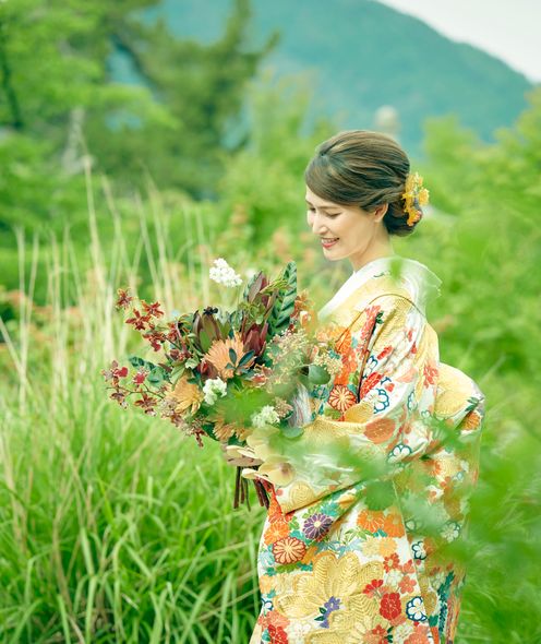 善光寺三社の一つとして親しまれる徒歩5分程度の<武井神社>や、荘厳な自然に包まれた<戸隠神社>での結婚式も藤屋スタッフが心を込めてサポートいたします。館内でお支度を行い、神社へ移動、本殿での介添え、記念撮影まで一貫してお手伝いします。日本伝統の儀式にのっとった本格的な神前式はゲストの心にも残るワンシーンに。