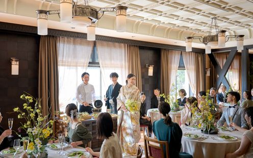 趣の異なる3つの会場は、それぞれの魅力を活かしながらふたりらしくアレンジが可能。最上階の貸切空間では自由度の高いコーディネートを、モダンな少人数会場では洗練されたおもてなしを、日本庭園を望む会場では四季の美しさと調和した演出を楽しめます。会場ごとの個性に寄り添いながら、理想のウエディングをかたちにします。