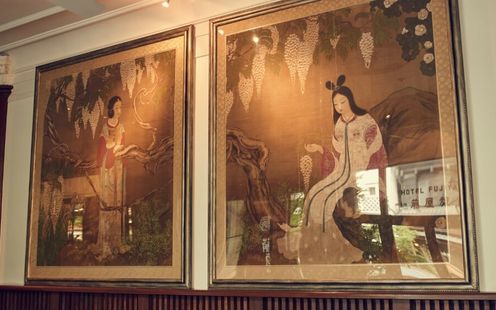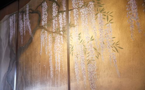 館内に足を踏み入れると、藤の花と女性を描いた日本画がお出迎え。