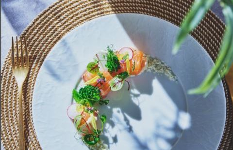 「旬」と「新鮮さ」にこだわり、地元・鎌倉の新鮮野菜をはじめ、選び抜かれた食材のみを使用。素材にこだわったアマンダンブルーの料理は、古都鎌倉に相応しく、和洋折衷とフレンチのコースからお選びいただきます。ひと品ごとに最もおいしい温度にこだわり、あたたかい料理は火を通してすぐに、冷たい料理は直前まで冷やしてご提供します。