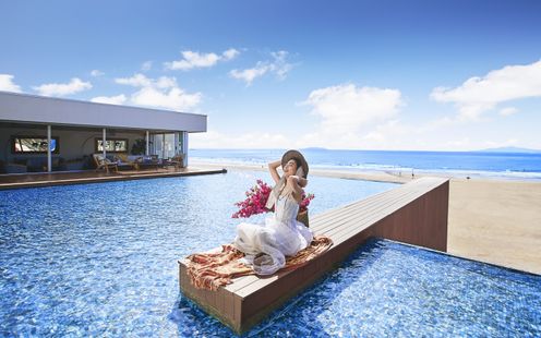 水平線と青空に続くように広がる空間で、心地よい潮風を感じながらゲスト同士が語らえる贅沢な場所。