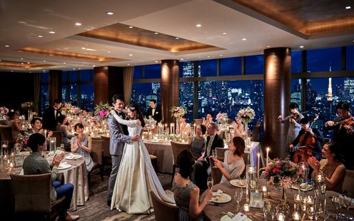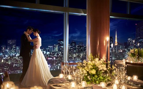 地上110m。都心の美しい景色を眺めながら、弦楽四重奏の調べに包まれて永遠の誓いを