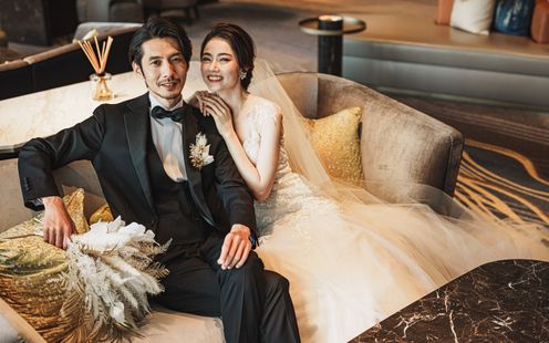 ラグジュアリーなしつらえのホテルだから、至る所がフォトジェニックな空間に。ふたりの何気ない表情をフォトグラファーがカメラにおさめてくれるのでロケフォトもぜひ検討してみては。