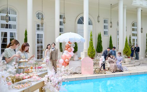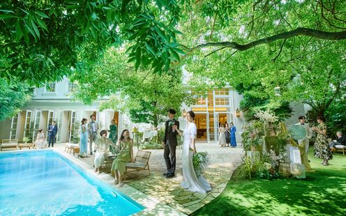 「ホワイトハウス」にはプール付きガーデンが、「ヴィクトリアハウス」には自然感じる緑まばゆいガーデン、とそれぞれの邸宅に隣接してオープンエアの空間が広がっています。広大なガーデンもふたりのアイデア次第で自由なウエディングステージに♪挙式後、フラワーシャワーやブーケトス、バルーンリリースなどのアフターセレモニーや、ガーデンパーティ、フォトブースを設置して記念撮影を楽しんだり、ナイトタイムには花火演出を行ったりしてふたりらしい演出をちりばめて!専属プランナーがふたりの希望にそって外国映画のワンシーンのようなオシャレなパーティを提案いたします。また、家族の一員であるペットも一緒に参列いただけます。