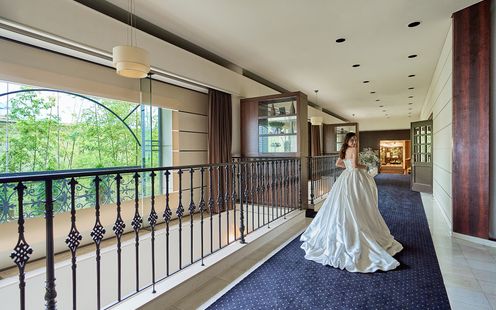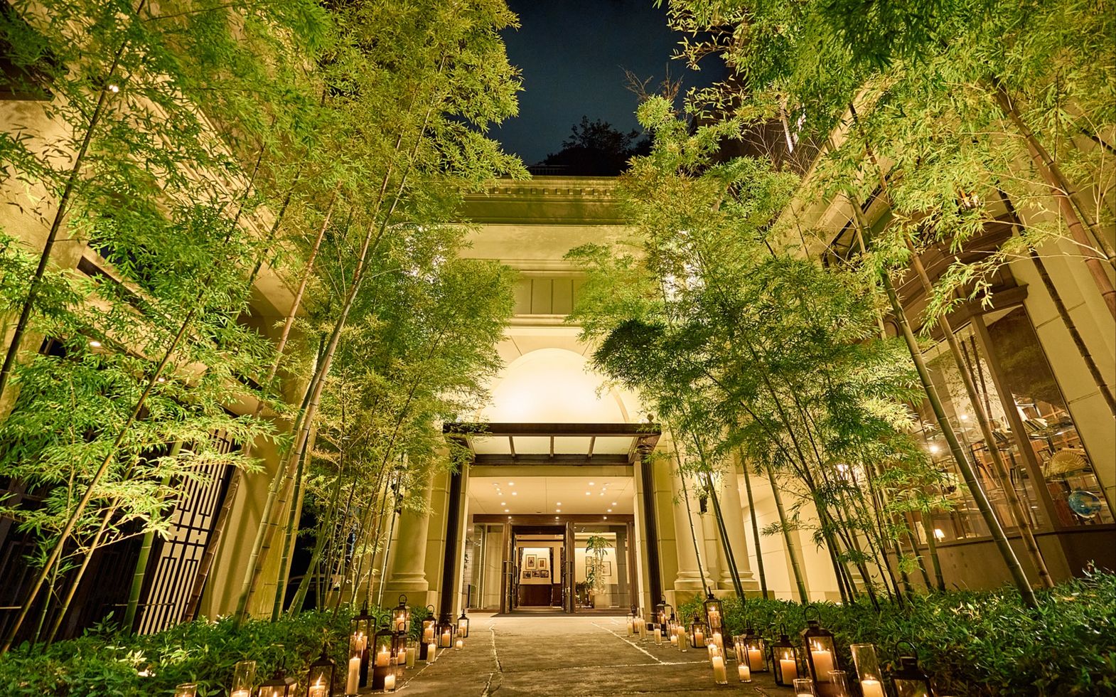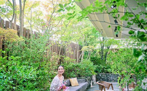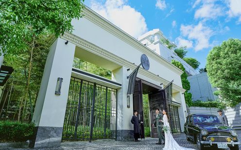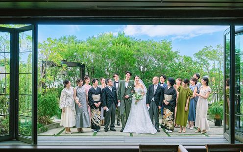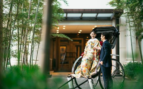 エントランスを抜けると都会の喧騒から離れ、非日常空間が広がる。訪れた瞬間から感じる伝統と格式、大空へと伸びる青々とした緑の竹林が古き良きものと未来が繋がるウェディングへと誘う。