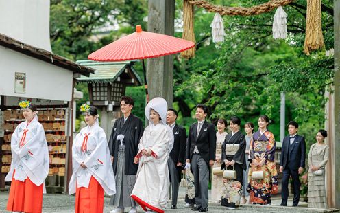 神前式ならではの格式高い挙式は、家族にとっても記憶に残る時間に。