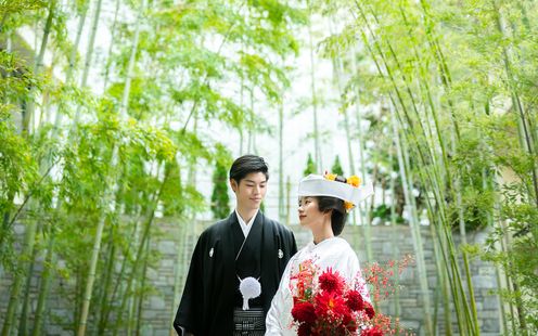 鮮やかな竹林の中で挙げる非日常的な挙式。日本美を堪能する特別挙式