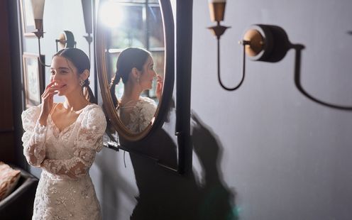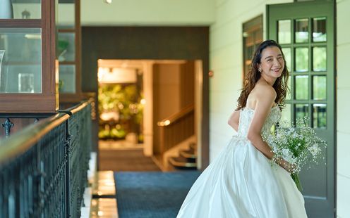 横浜迎賓館では、会場の雰囲気やコンセプトに合わせたオリジナルコレクションやミラノ・パリ・ロンドン・ニューヨークなど、世界の一流ブランドの最新ウエディングドレスを多数揃えた直営店「LIVE LOVE LAUGH」で衣装をお選びいただけます。バージンロードの装飾やチャペル内の光、パーティ会場のインテリアなどに調和する最も美しい「運命の一着」と出会うためのお手伝いをいたします。