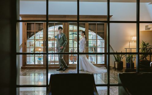 厳かに差し込む光の中、最上階の音楽堂で誓う、ふたりの物語。