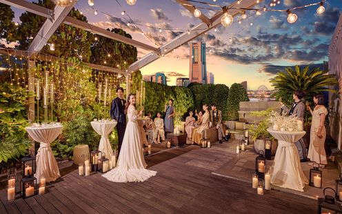 横浜・みなとみらいを望む開放感溢れるテラスでのウエルカムパーティが楽しめる