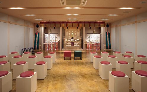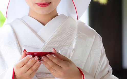 朱雀邸より北に10分、歴史ある由緒正しき「大将軍八神社」より宮司を招き、本格的な神前式を実現します。館内にある神殿なので天候にも左右されず、年配のご親族にとっても、移動の負担を最小限にとどめることができます。婚儀は修祓の儀に始まり、誓杯の儀、玉串拝礼など、古式ゆかしい伝統にのっとった儀式を執り行うことができます。清浄潔白という意味を持つ白無垢に身を包み、永遠の誓いを。