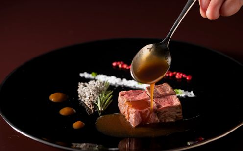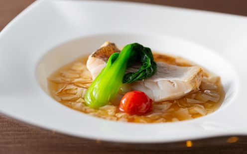 京野菜をはじめとした地物素材にこだわり、フレンチの枠にとらわれない自由な発想で創作されたコース料理。その四季折々の味わいや、一皿一皿の美しい盛りつけだけでなく、特別な日を永く記憶に残す、華やいだ印象がテーブルに流れます。また、アレルギー対応はもちろん、ゲスト一人ひとりの体調に合わせて細やかなコースアレンジも対応いたします。 お手元にお箸を用意し、1口サイズにカットして料理を提供することも可能です。さらに、ふたりの出身地にまつわる食材をコース料理のメニューに取り入れたオリジナル料理も対応可能ですのでまずは気軽にご相談ください。