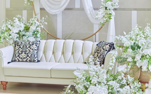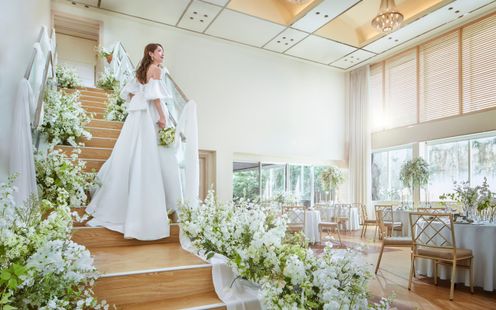 ドレスも和装も似合う、モダンな邸宅でふたりらしい1日を叶えて。館内に一歩足を踏み入れた途端、ウェディングのために創られた贅沢な非日常空間が広がっています。