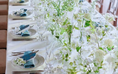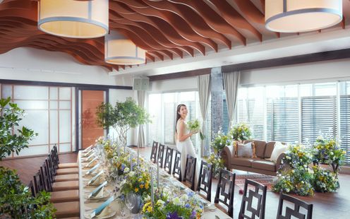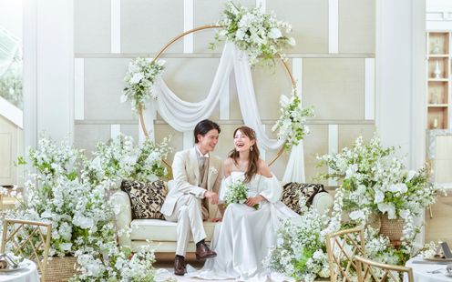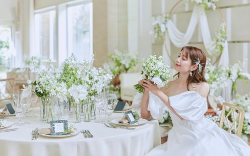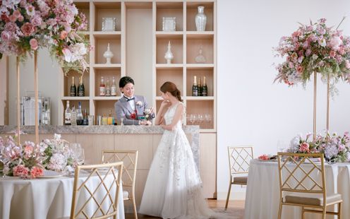 他のパーティを気にすることもなく、フロア貸切で1日ゆったりと寛げるからふたりらしいアイデアで空間演出をお楽しみいただけます。自然光を活かしたナチュラルテイストからジャパニーズモダン、スタイリッシュなシンプルなスタイリングなどふたりの希望に沿ってフローリストが世界観を創り上げます。