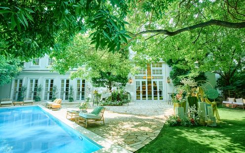仙台駅から徒歩5分の好立地。当日は白亜の一軒家とオールスタッフをすべて貸切!パーティ会場に隣接してプール付きガーデンもあるからゲストとリラックスした1日をお過ごしいただけます。