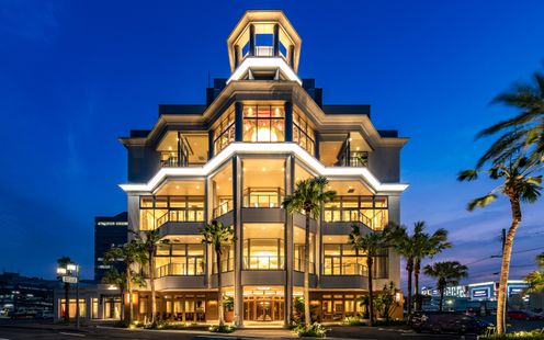 与次郎の海沿いに建ち、桜島を正面に望むゲストハウス。
