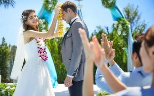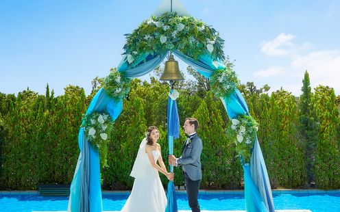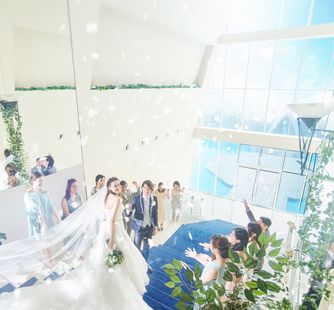 クラシックな鐘の音が美しいカリヨンが鳴り響き、無限に広がる青空が誓いのシーンを彩ります。ハワイの儀式を取り入れた「レイウエディング」など、オリジナル性も抜群!煌めく水辺をゲストと囲み、バルーンリリースやバブルシャワー、水と泡に囲まれたアフターセレモニーもお楽しみいただけます。オープンエアの開放感あふれる空間をふたり占め!