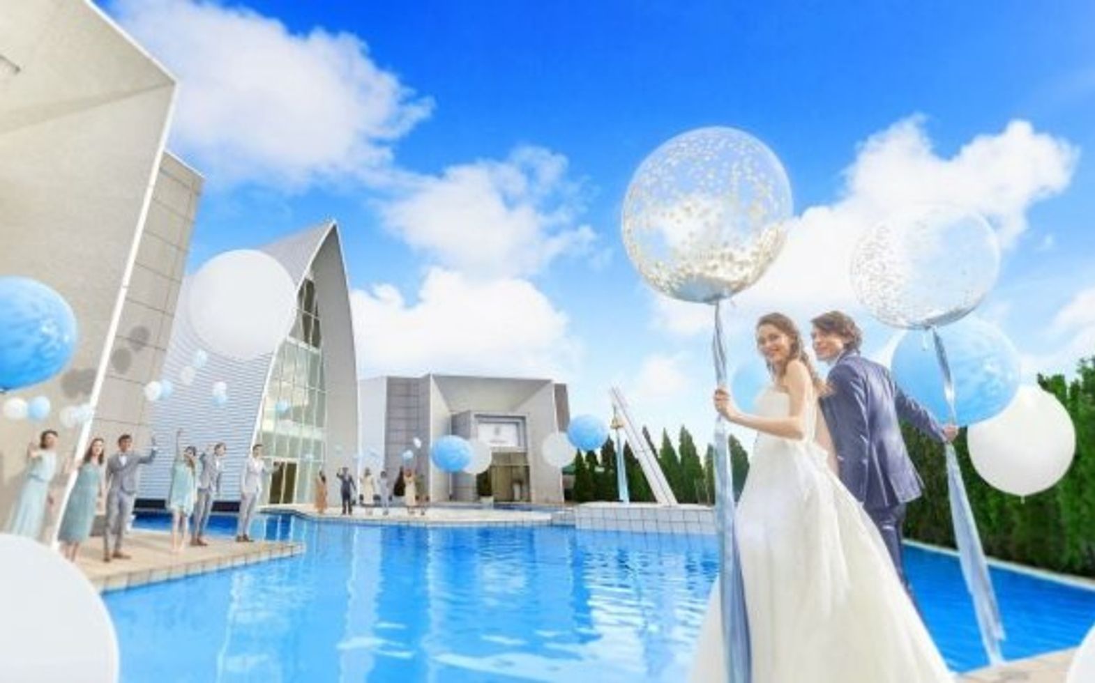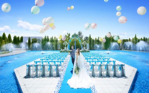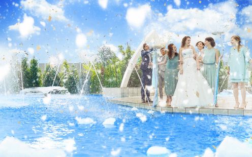 プール付きオープンテラスでセレモニーや、多彩な屋外演出を楽しんで!