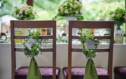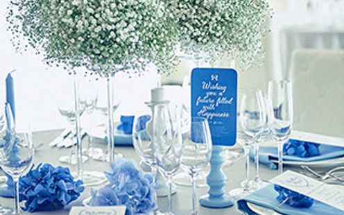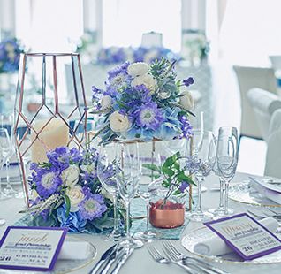 プランナーと相談してふたりの幸せな一日をトータルコーディネートでお愉しみください。ふたりらしいこだわりのアイテムを会場のあちらこちらにセッティングしてゲストの目を愉しませて!ウエルカムスペースからワクワクする雰囲気ならゲストも一日楽しめるはず!