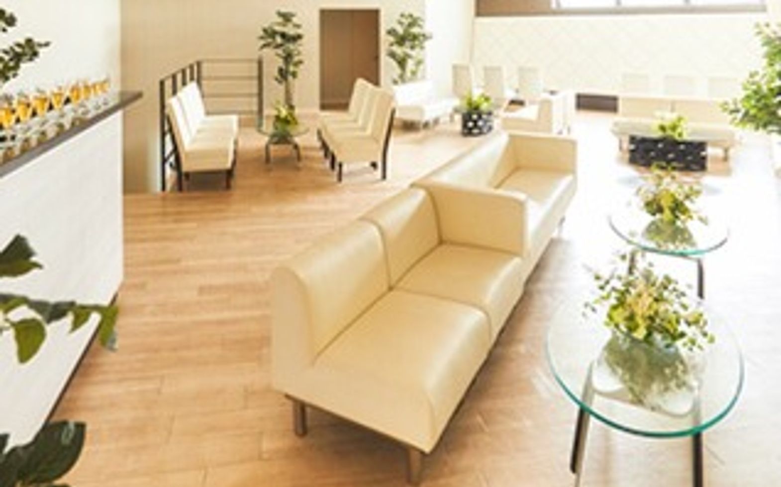 優しい自然光の差込むナチュラルな空間。お越しいただいたゲストにソファ席でゆったりとリラックスしていただけます。