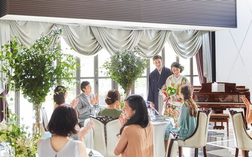 大階段やガーデンが備えられた魅力的な舞台で、ゲストをあっと驚かせる多彩な演出をお楽しみください。会場のレイアウトも自由自在。ゲストと心が繋がるアットホームな時間をお過ごしいただけます。サプライズ花火やシルエット入場など、映画のワンシーンのように ロマンチックな演出も人気です。また、少人数専用のスペースも各邸宅内に用意しています。家族や親族だけで行うアットホームな結婚式や会食を検討しているふたりへ、専用のプランやコーディネートを提案いたします。