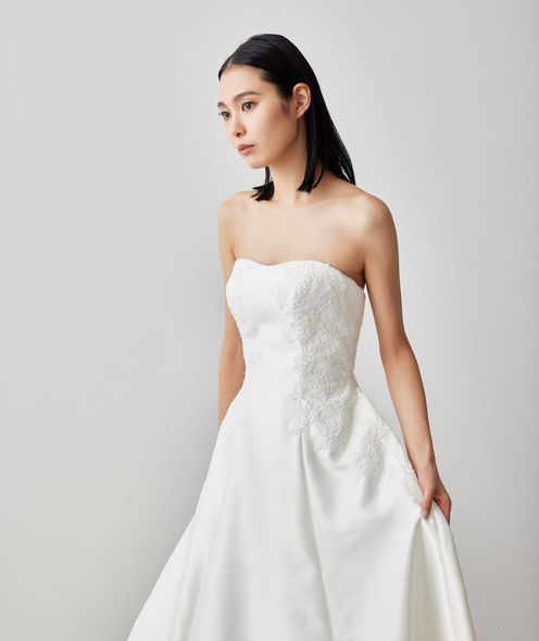 自社ブランド「プリマカーラ」では、国内外の人気ラインから同館の雰囲気によく似合うオリジナルラインナップを取り揃えました。ふたりの結婚式のコンセプトを理解したうえでスタイリングができるのは、内製でのトータルプロデュースだからこそです。当日の空間をイメージしながらぴったりのスタイルを提案します。和装・メンズ衣裳も豊富に取り揃えておりますので見学して試着体験を!