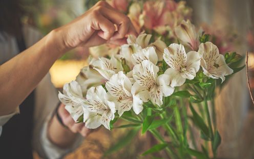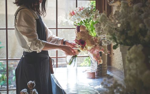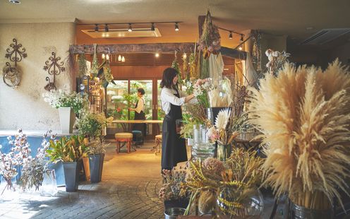館内には「フラワーアトリエ」も併設。会場コーディネートやブーケ、ヘッドドレスなど気軽に相談&オーダーいただけます。