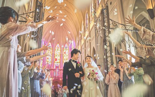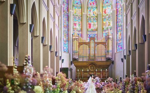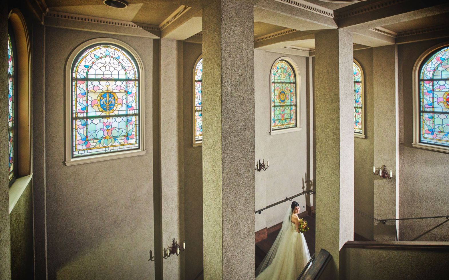 花嫁誰もが一目惚れする、ステンドグラスの光に照らされた西日本最大級の大聖堂