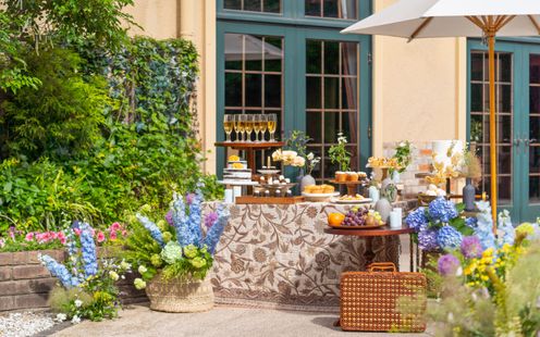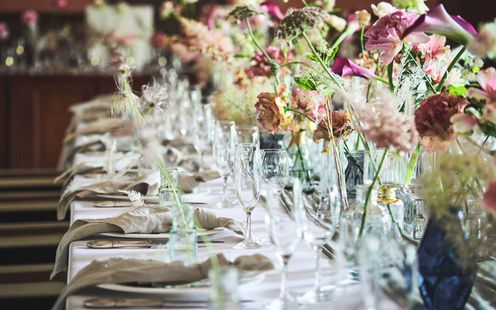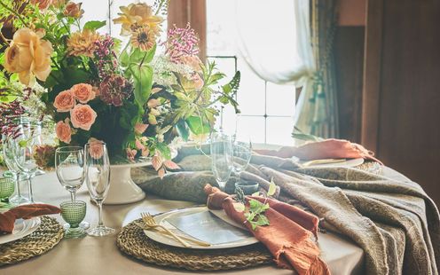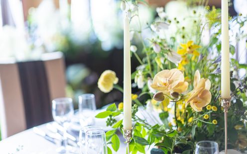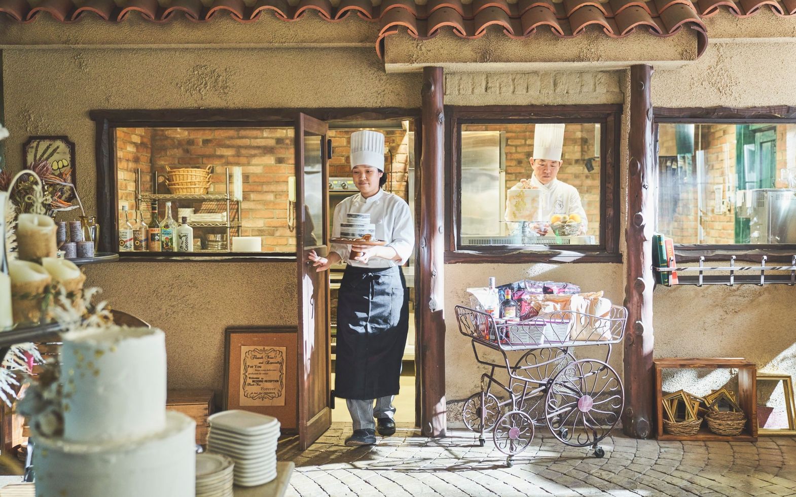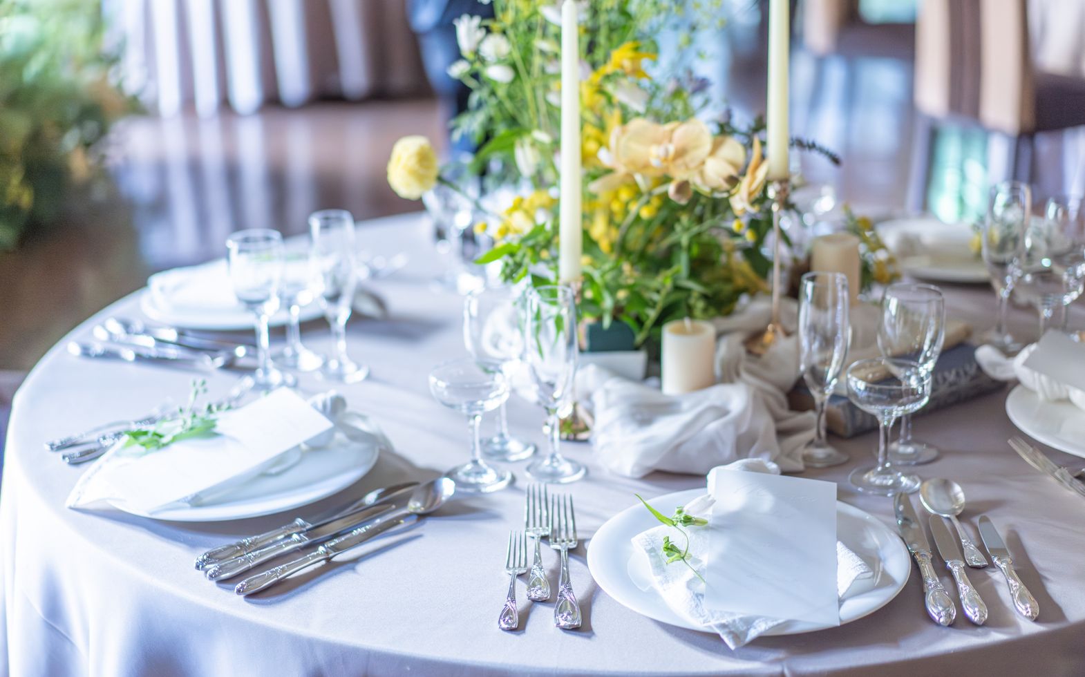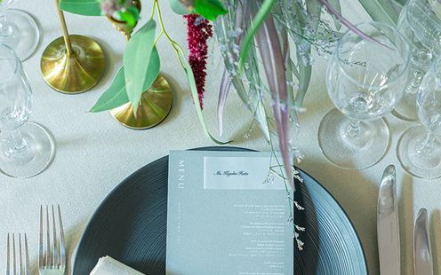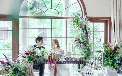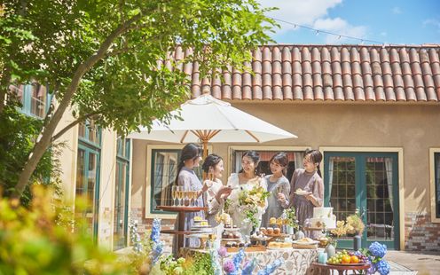 素朴でボタニカルな雰囲気漂う「南仏プロヴァンス地方のぶどう農園主の屋敷」をコンセプトにしたバンケット。あたたかな陽射しや木漏れ日が入る緑あふれるガーデンでゲストと過ごす至福の時間を。
