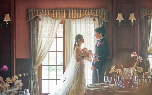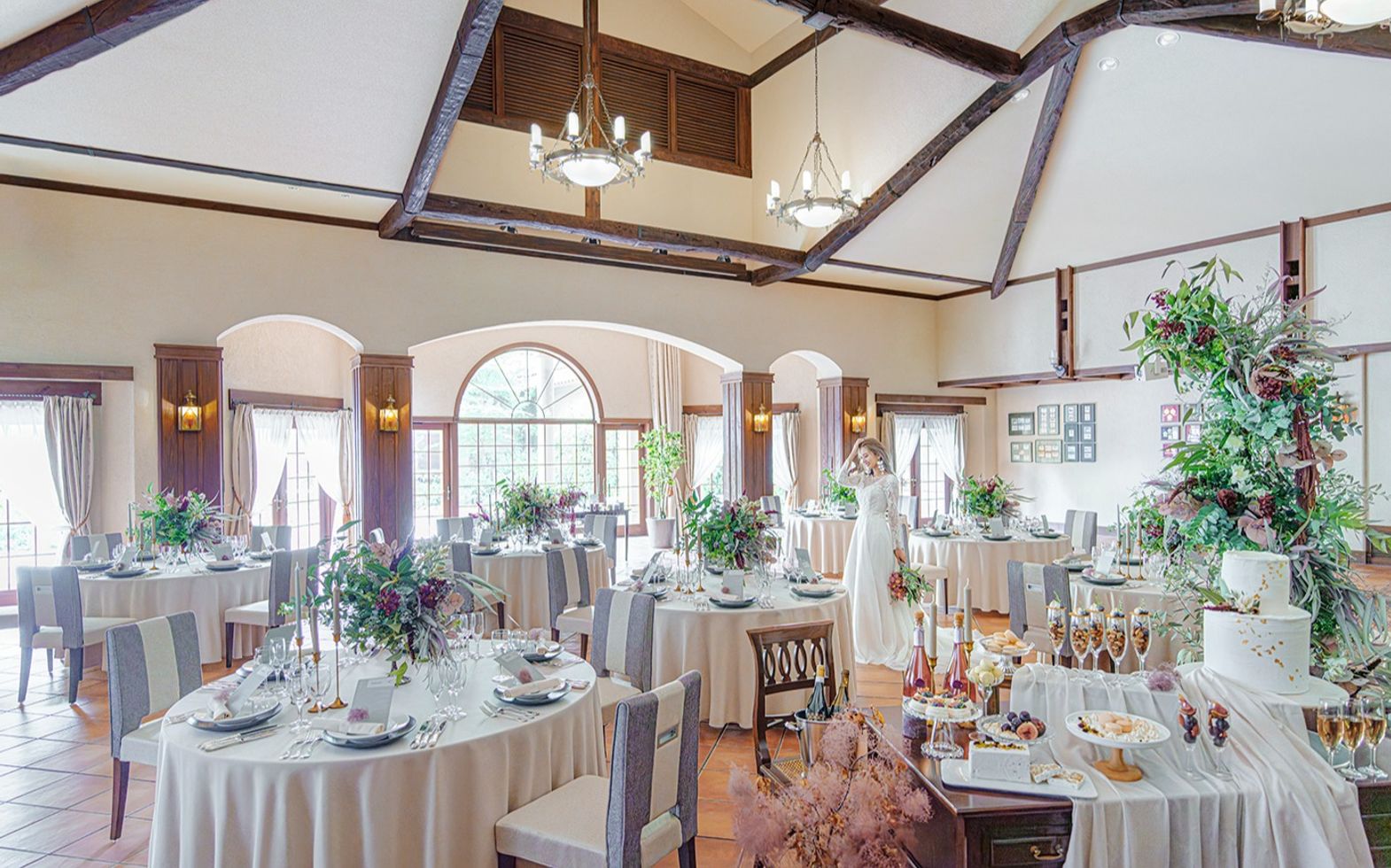 レンガ造りの外観が印象的のスタイリッシュな会場。バラが咲く本格的なイングリッシュガーデンを備えた英国邸宅であり、館内のどこにいても非日常を味わえる上質な雰囲気に包まれながら過ごす時間はゲストにとっても特別な時間に。