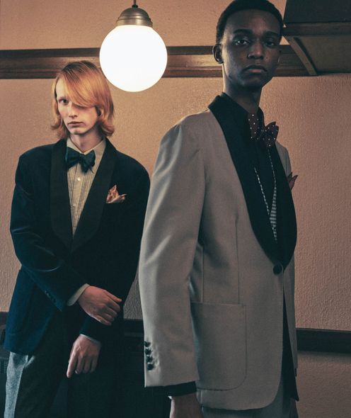 メンズのコーディネートも楽しい衣裳合わせの時間です。ドレスを際立たせる豊富なラインナップからお好みの1着を一緒にお探しさせてください。