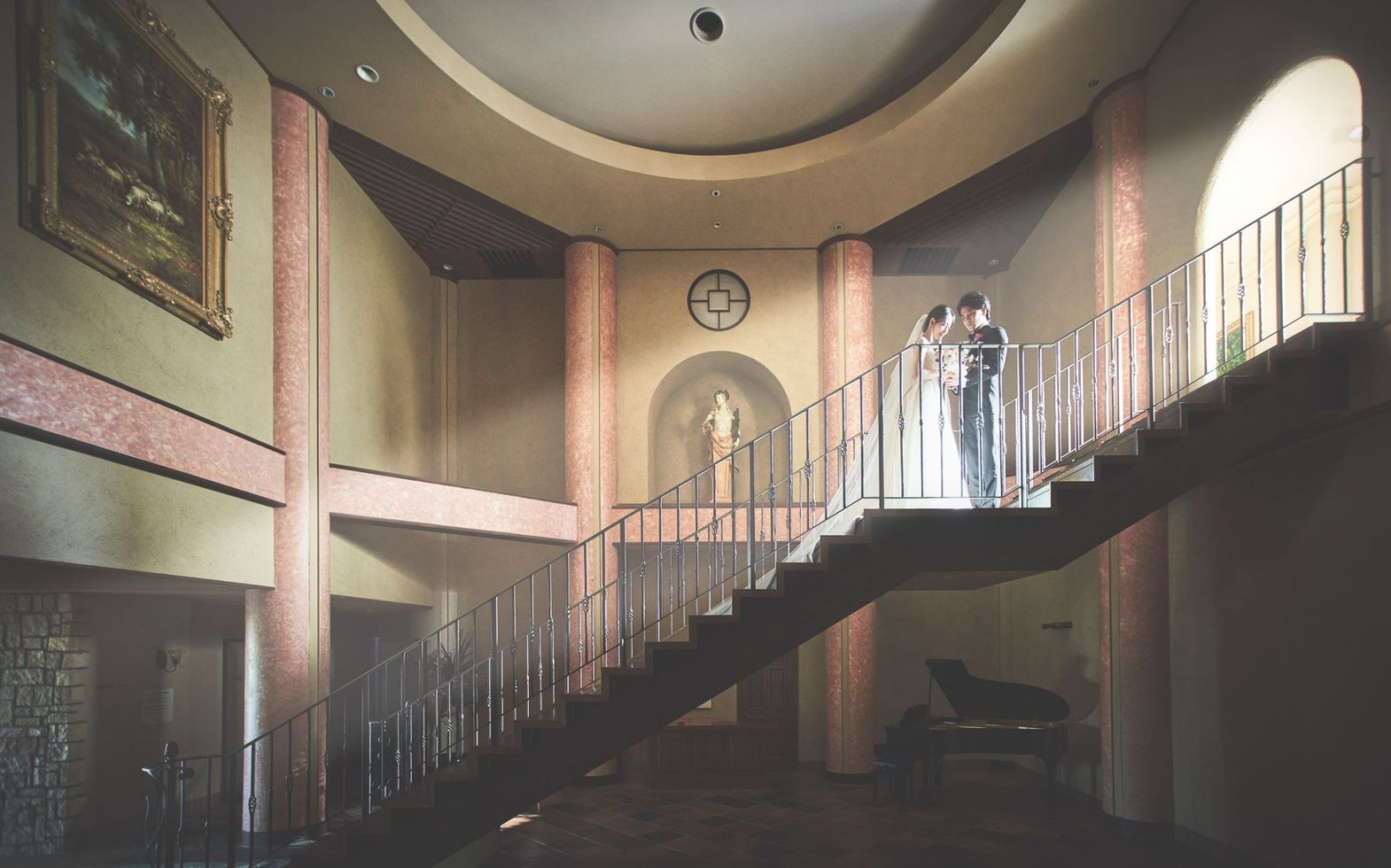 大聖堂への階段にも贅沢なステンドグラスがあしらわれています!ここは前撮りで人気のフォトジェニックなスポット。