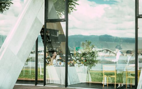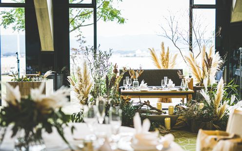 びわ湖と比良の山並みを望む特等席で、滋賀県の恵みをふんだんに取り入れたお料理を堪能していただく、アットホームなレストランウエディングがここに。ゲストとの距離感を大切に、リラックスした時間をお過ごしください。