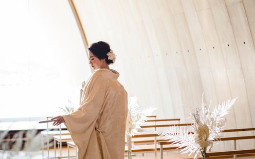 セトレ マリーナびわ湖ではドレスだけでなく、和装をお召しになる方も多くいらっしゃいます。自然と調和する美しい和の装いが、おふたりらしさをより際立たせるアイテムに。和装でしか出来ないコーディネートや演出もご提案させていただきます。