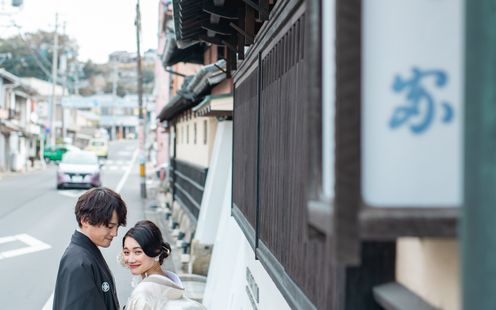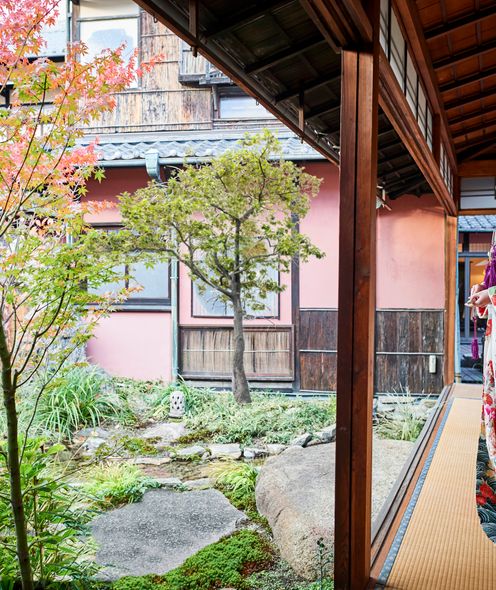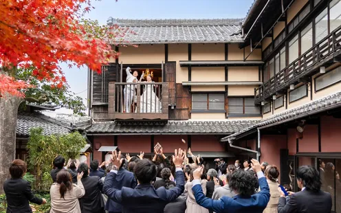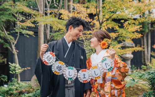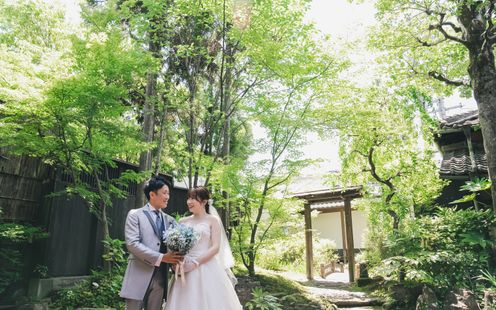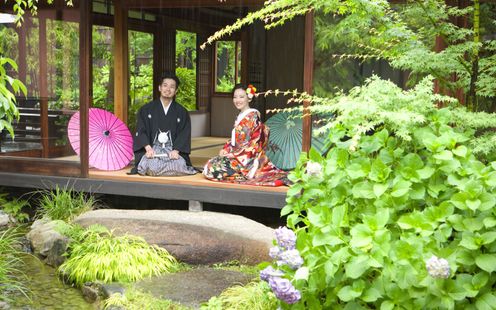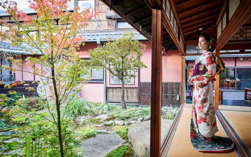 老舗料亭の面影を感じられる四季折々の景色が美しい中庭を愛でながら、記念撮影もお楽しみいただけます。