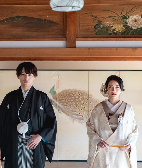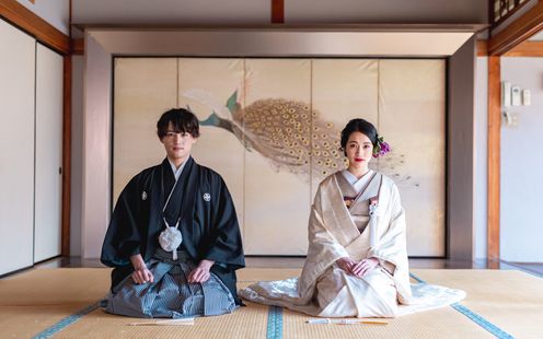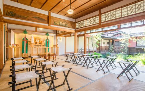 日本庭園を望む天井の和室で静寂に包まれて古式ゆかしい儀式が叶う