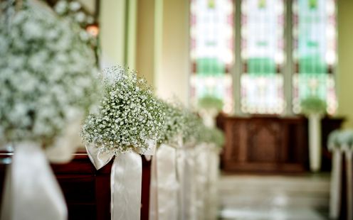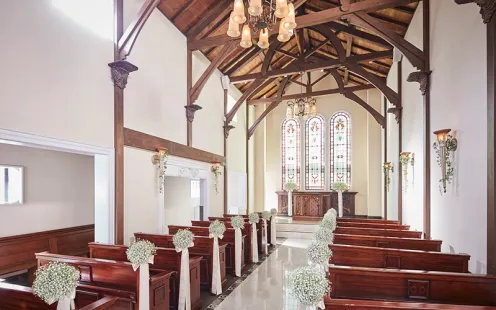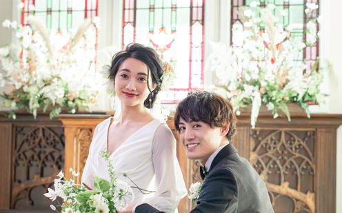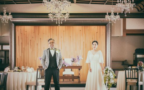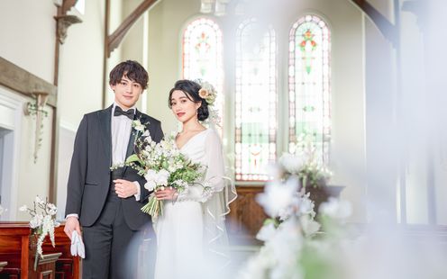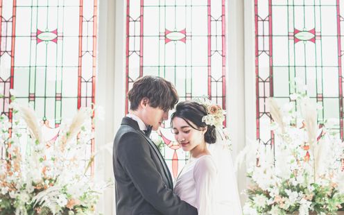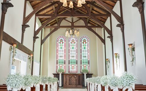 豊かさや繁栄の象徴である「蔵」をチャペルにリノベーション。ステンドグラスからの陽光が美しく彩るアンティークで統一された空間は、ゲストとの距離も近くアットホームな挙式が叶います。