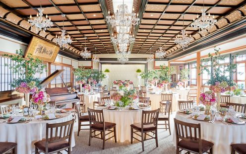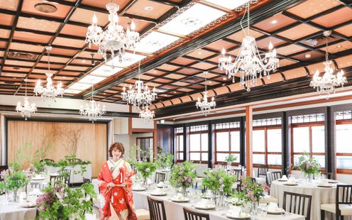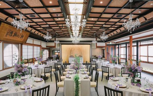 高級感と懐かしさ。天井が高く、開放感あふれる100畳もの大広間で和モダン薫るパーティを
