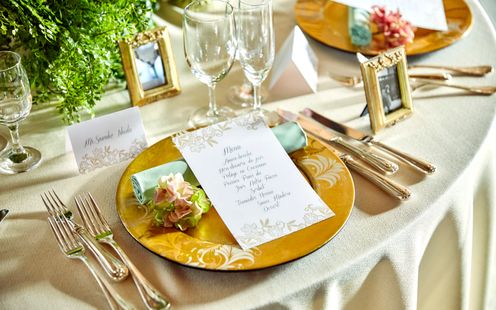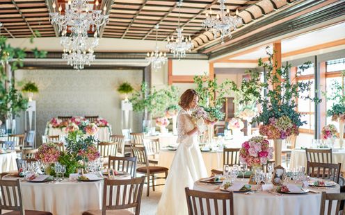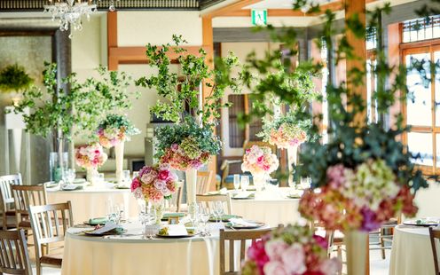 専属フラワーコーディネーターがふたりのコンセプトを一緒に考え、唯一無二の装花を創造します。日本の伝統美と洗練された装花が調和し、上品で心温まる空間を演出します。