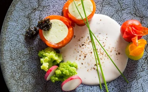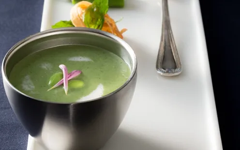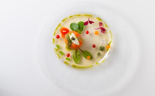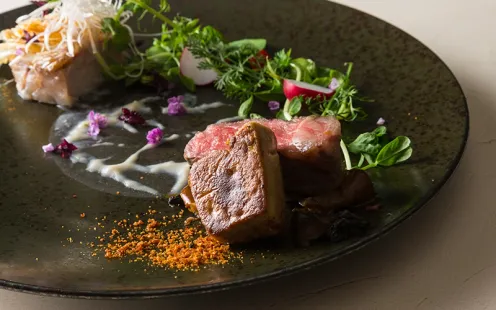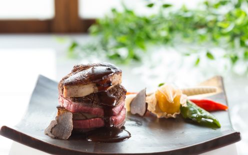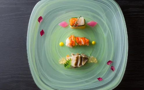 フランス料理の本質を大切に、メニューや調理法にこだわって仕上げています。テーブルに置いた瞬間、心を掴むような美しい見た目と記憶に残る味を提供。織部焼に盛られた繊細な『フレンチジャポネ―ゼ』はお箸で味わえるので、幅広い年齢層のゲストにきっと喜ばれるはず。
